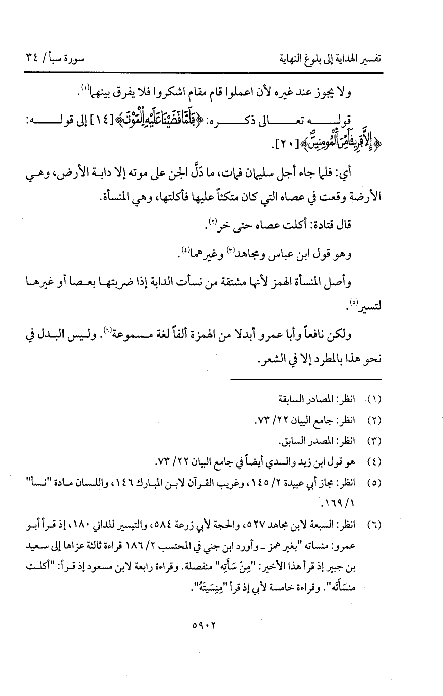 وأصل المنسأة الهمز لأنها مشتقة من نسأت الدابة إذا ضربتها بعصا أو غيرها لتسير.