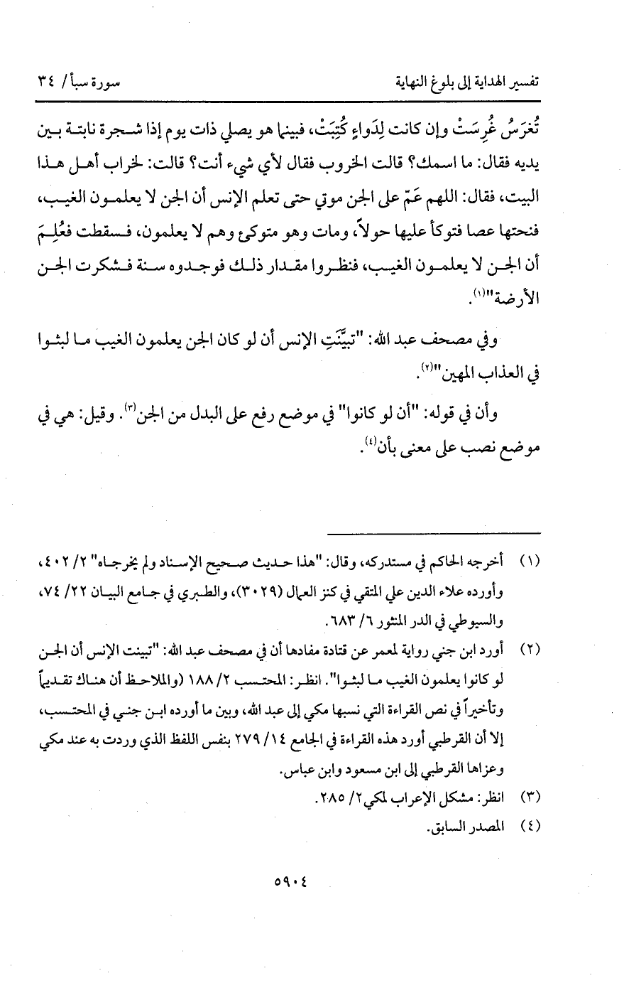 وفي مصحف عبد الله: " تبيَّنَتِ الإنس أن لو كان الجن يعلمون الغيب ما لبثوا في العذاب المهين ".