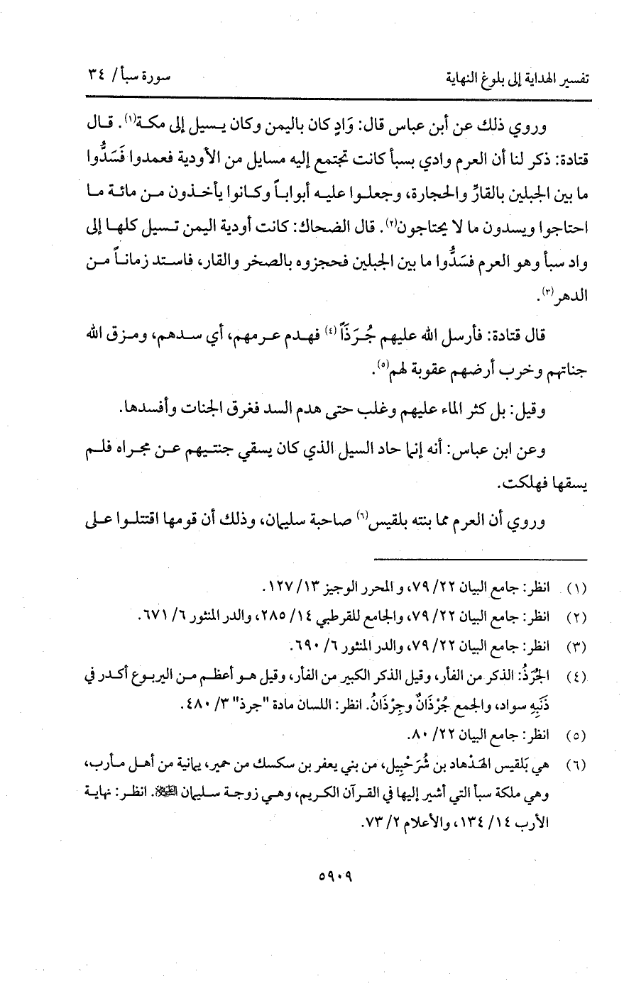 وروي ذلك عن ابن عباس قال: وَادٍ كان باليمن وكان يسيل إلى مكة. قال قتادة: ذكر لنا أن العرب وادي بسبأ كانت تجتمع إليه مسايل من الأودية فعمدوا فَسَدُّوا ما بين الجبلين بالقارِّ والحجارة، وجعلوا عليه أبواباً وكانوا يأخذون من مائة ما احتاجوا ويسدون ما لا يحتاجون. قال الضحاك: كانت أودية اليمن تسيل كلها إلى وادي سبأ وهو العرم فسَدُّوا ما بين الجبلين فحجزوه بالصخر والقار، فاستد زماناً من الدهر.