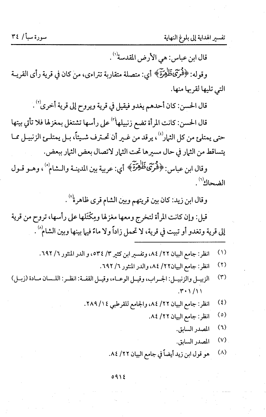 وقال ابن زيد: كان بين قريتهم وبين الشام قرى ظاهرة.