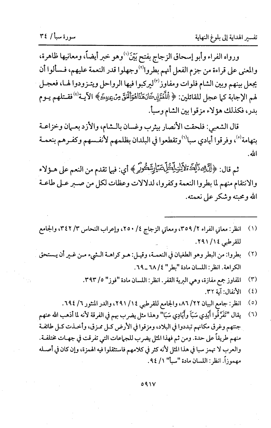 ورواه الفراء وأبو إسحاق الزجاج بَيْنَ وهو خبر أيضاً، ومعانيها ظاهرة، والمعنى على قراءة من جزم الفعل أنهم بطروا وجهلوا قدر النعمة عليهم، فسألوا أن يجعل بينهم وبين الشام فلوات ومفاوز ليركبوا فيها الرواحل ويتزودوا لها، فعجل لهم الإجابة كما عجل للقائلين: {اللهم إِن كَانَ هذا هُوَ الحق} [الأنفال: 32] الآي فتقلهم يوم بدر، فكذلك هؤلاء مزقوا بين الشام وسبأ.
