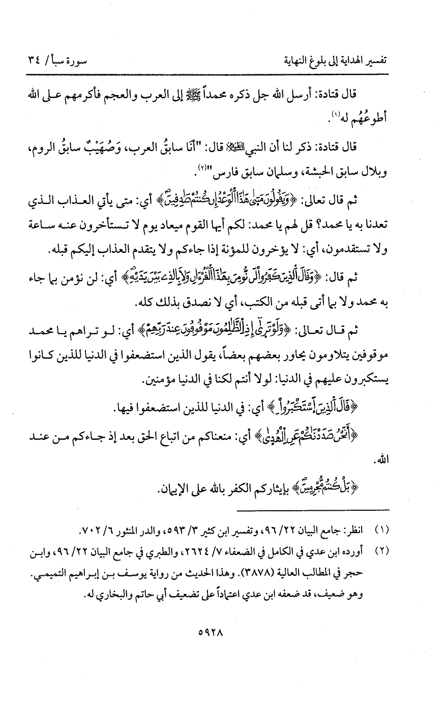 قال قتادة: ذكر لنا أن النبي عليه السلام قال: " أنَا سابقُ العرب، وَصُهَيْبٌ سابقُ الروم، وبلال سابق الحبشة، وسلمان سابق فارس ".