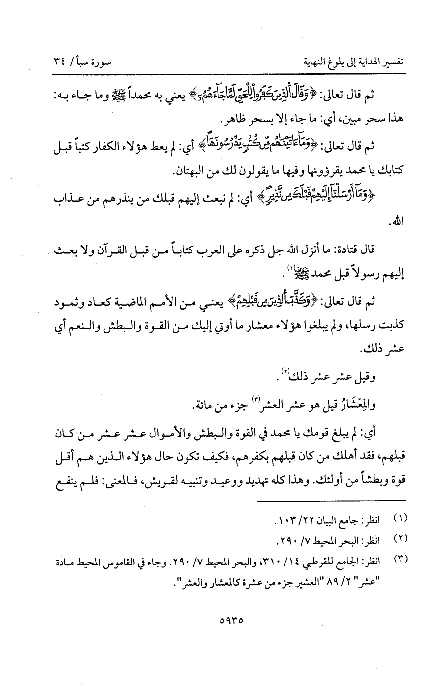 قال قتادة: ما أنزل الله جل ذكره على العرب كتاباً من قبل القرآن ولا بعث إليهم رسولاً قبل محمد A.