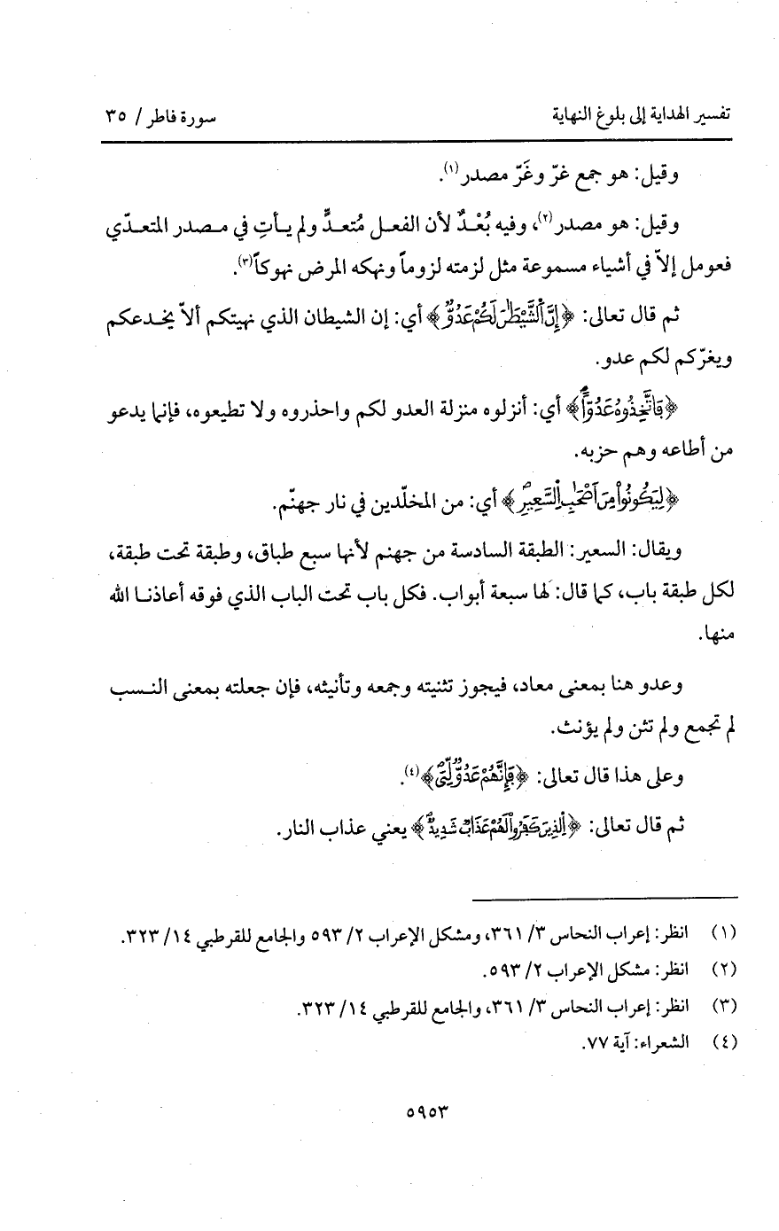 وعدو هنا بمعنى معاد، فيجوز تثنيته وجمعه وتأنيثه، فإن جعلته بمعنى النسب لم تجمع ولم تثن ولم يؤنث.