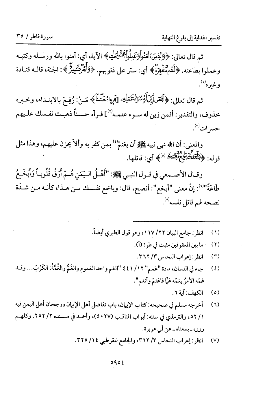 ثم قال تعالى: {أَفَمَن زُيِّنَ لَهُ سواء عَمَلِهِ [فَرَآهُ حَسَناً} مَنْ: رُفِعَ بالابتداء، وخبره محذوف، والتقدير: أفمن زين له سوء عمله] فرآه حسناً ذهبت نفسك عليهم حسرات.