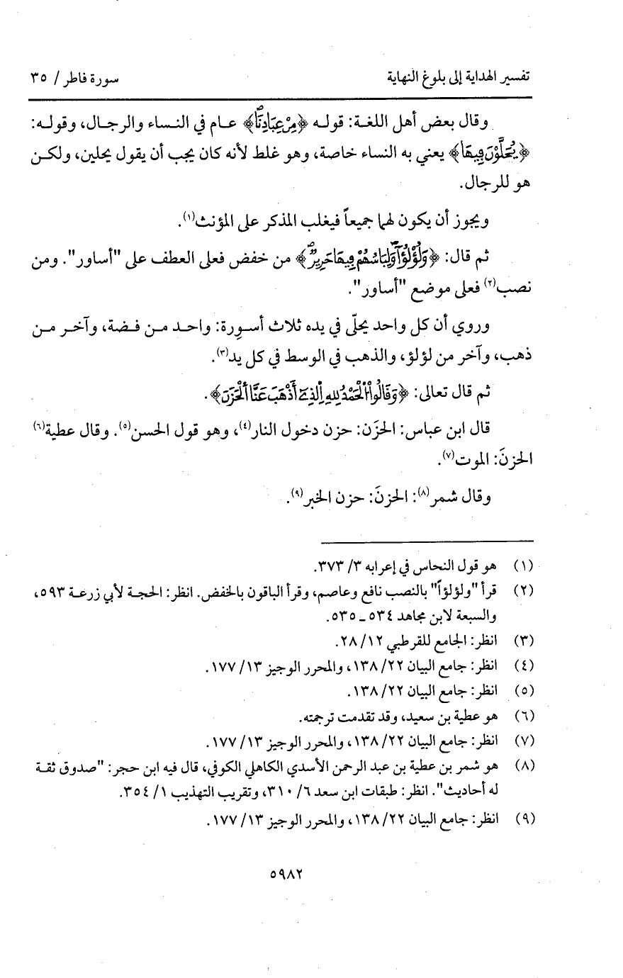 وقال بعض أهل اللغة: قوله: {مِنْ عِبَادِنَا} عام في النساء والرجال، وقوله: {يُحَلَّوْنَ فِيهَا} يعني به النساء خاصة، وهو غلط لأنه كان يجب أن يقول يحلين، ولكن هو للرجال.