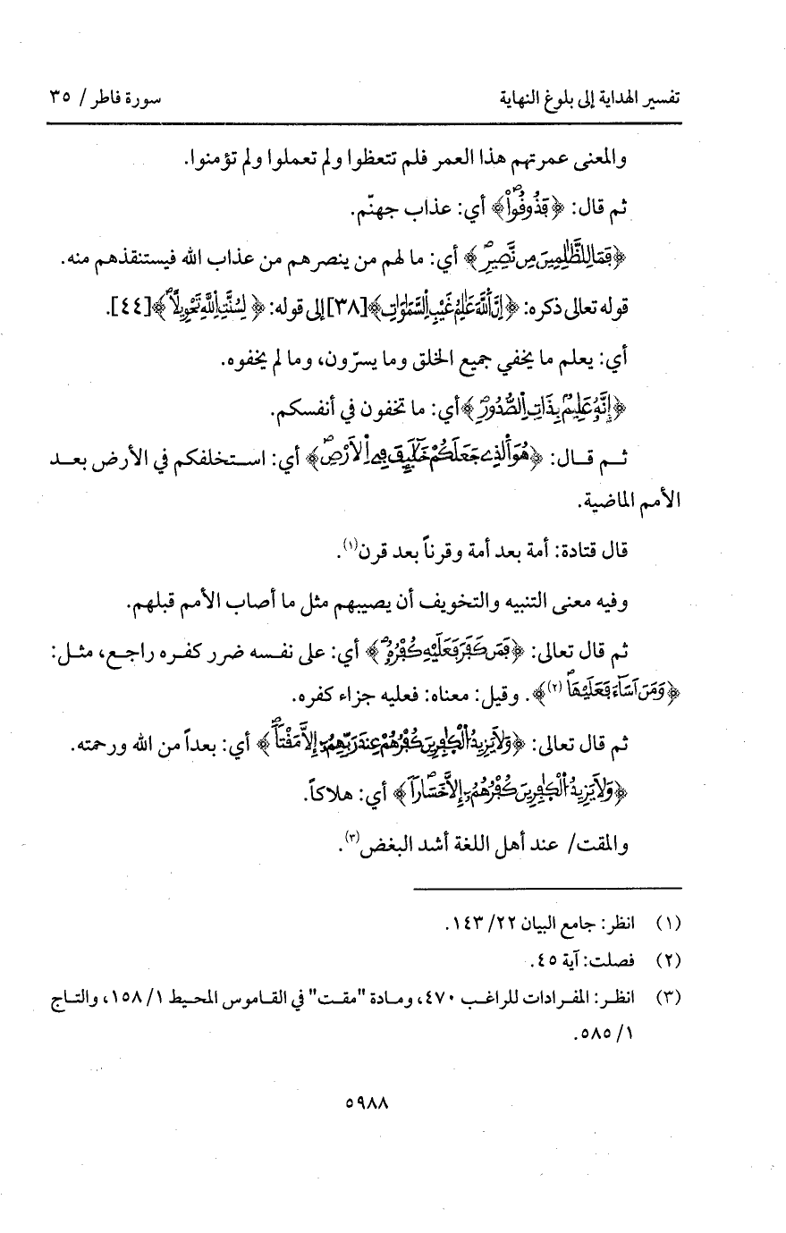 قوله تعالى ذكره: {إِنَّ الله عَالِمُ غَيْبِ السماوات} إلى قوله: {لِسُنَّتِ الله تَحْوِيلاً}.