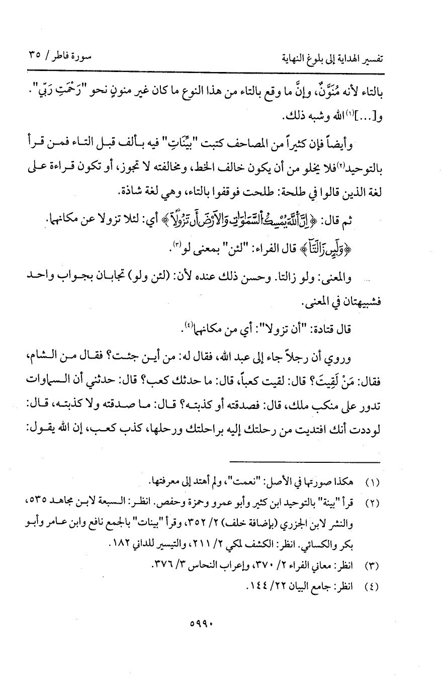 وروي أن رجلاً جاء إلى عبد الله، فقال له: من أين جئت؟ فقال من الشام، فقال: مَنْ لَقِيتَ؟ قال: لقيت كعباً، قال: ما حدثك كعب؟ قال: حدثني أن السماوات تدور على منكب ملك، قال: فصدقته أو كذبته؟ قال: ما صدقته ولا كذبته، قال: لوددت أنك افتديت من رحلتك إليه براحلتك ورحلها، كذب كعب، إن الله يقول: