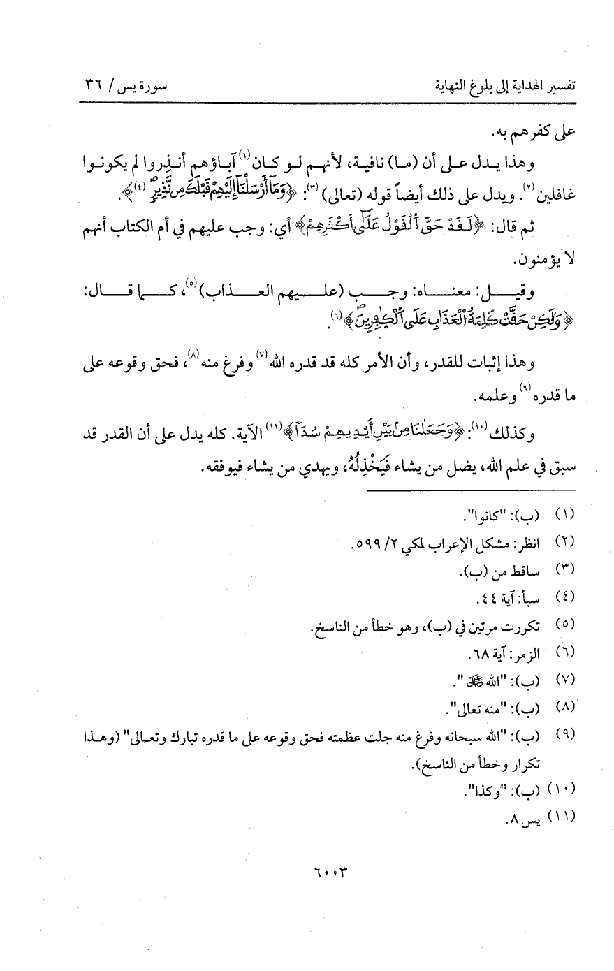 وكذلك: {وَجَعَلْنَا مِن بَيْنِ أَيْدِيهِمْ سَدّاً} [يس: 9] الآية. كله يدل على أن القدر قد سبق في علم الله، يضل من يشاء فَيَخْذِلُهُ، ويهدي من يشاء فيوفقه.