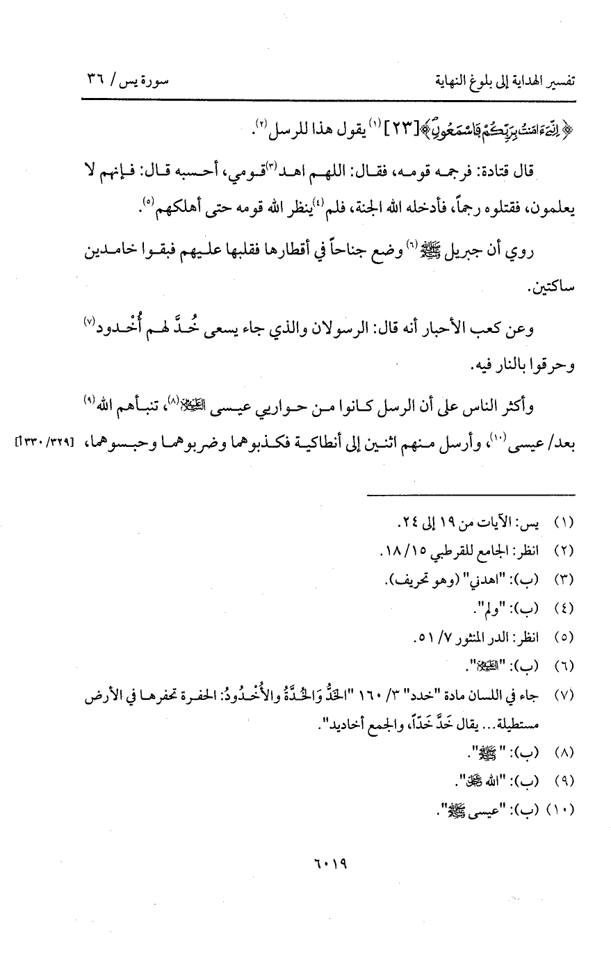 وعن كعب الأحبار أنه قال: الرسولان والذي جاء يسعى خُدَّ لهم أُخْدود وحرقوا بالنار فيه.