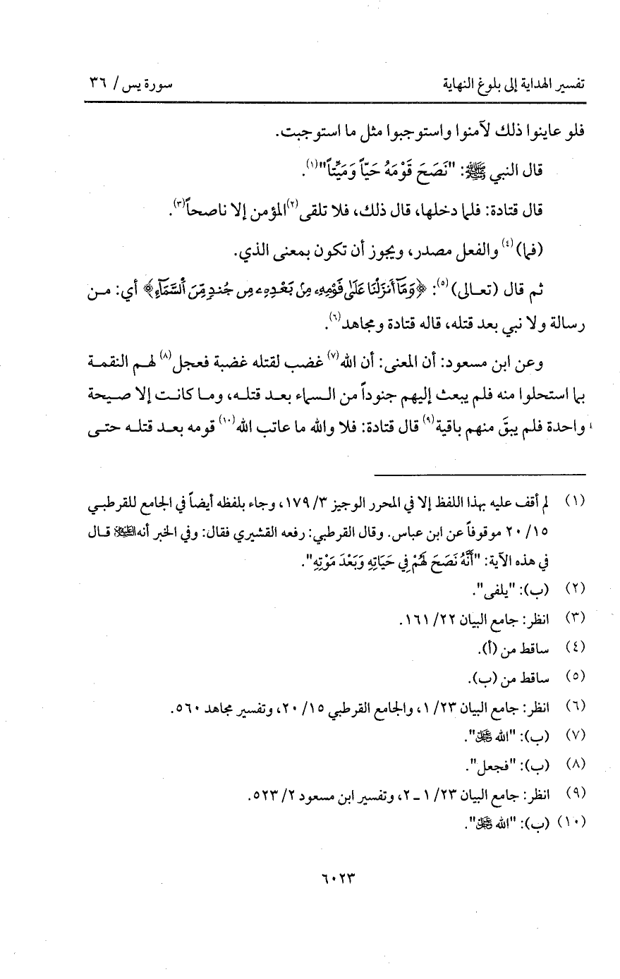 وعن ابن مسعود: أن المعنى: أن الله غضب لقتله غضبه فعجل لهم النقمة بما استحلوا منه فلم يبعث إليهم جنوداً من السماء بعد قتله، وما كانت إلا صيحة واحدة فلم يبقَ منهم باقية قال قتادة: فلا والله ما عاتب الله قومه بعد قتله حتى