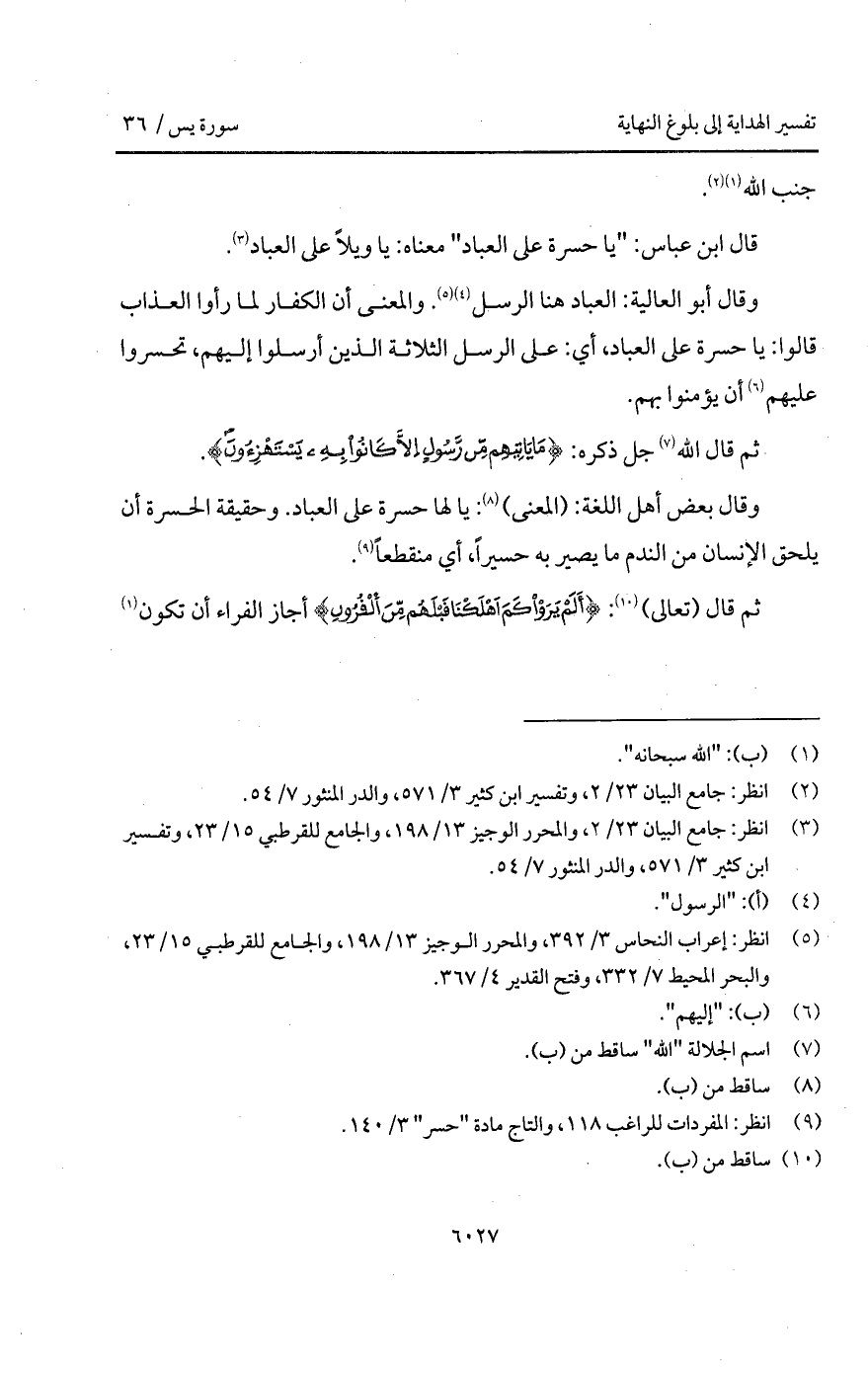 قال ابن عباس: " يا حسرة على العابد " معناه: يا ويلاً على العباد.