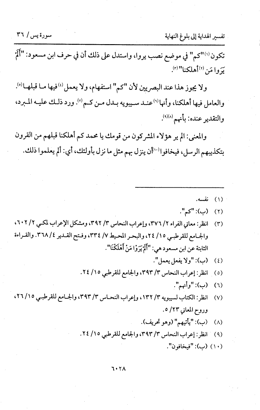 " كم " في موضع نصب يروا، واستدل على ذلك أن في حرف ابن مسعود: " أَلَمْ يَرَوا مَن أهلكنا ".