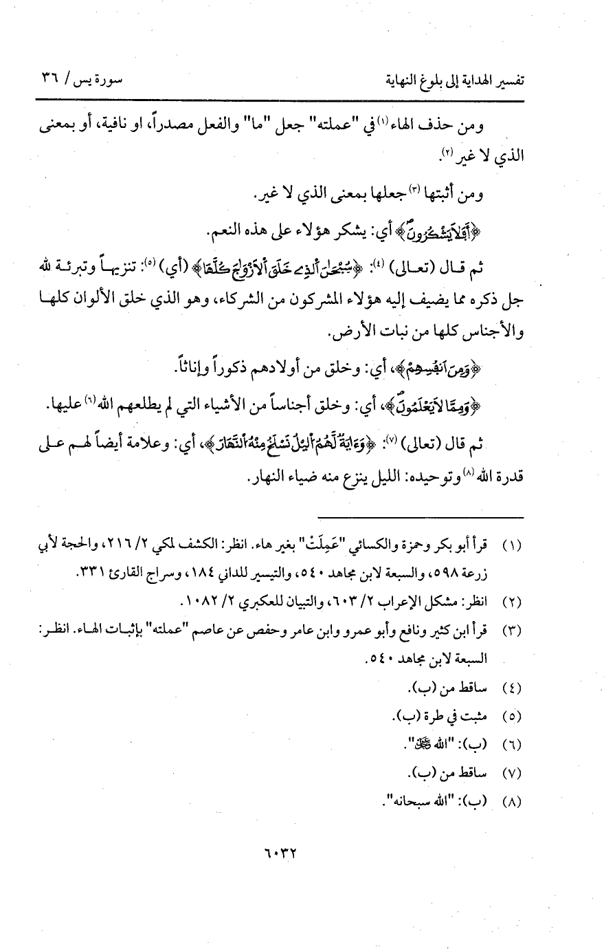 ومن حذف الهاء في " عملته " جعل " ما " والفعل مصدراً، او نافية، أو بمعنى الذي لا غير.