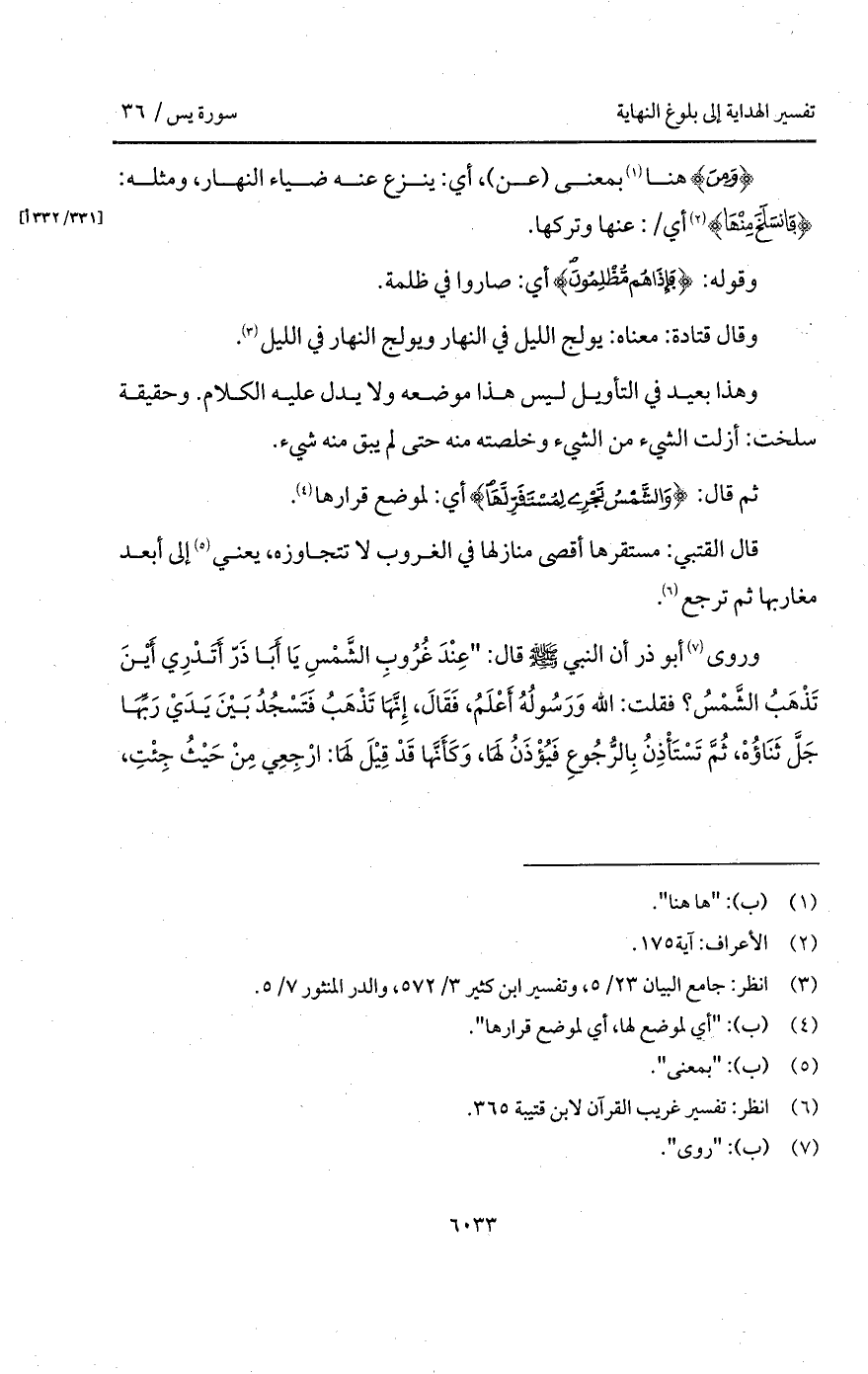قال القتبي: مستقرها أقصى منازلها في الغروب لا تتجاوزه، يعني إلى أبعد مغاربها ثم ترجع.