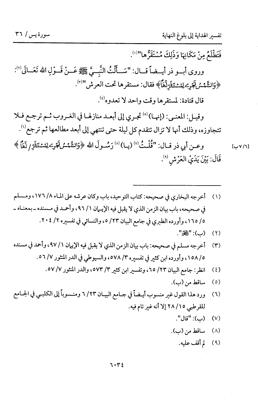 وروى أبو ذر أيضاً قال: " سَأَلْتُ النَّبِيَّ A عَنْ قَوْلِ الله تَعَالَى: {والشمس تَجْرِي لِمُسْتَقَرٍّ لَّهَا} فقال: مستقرها تحت العرش ".