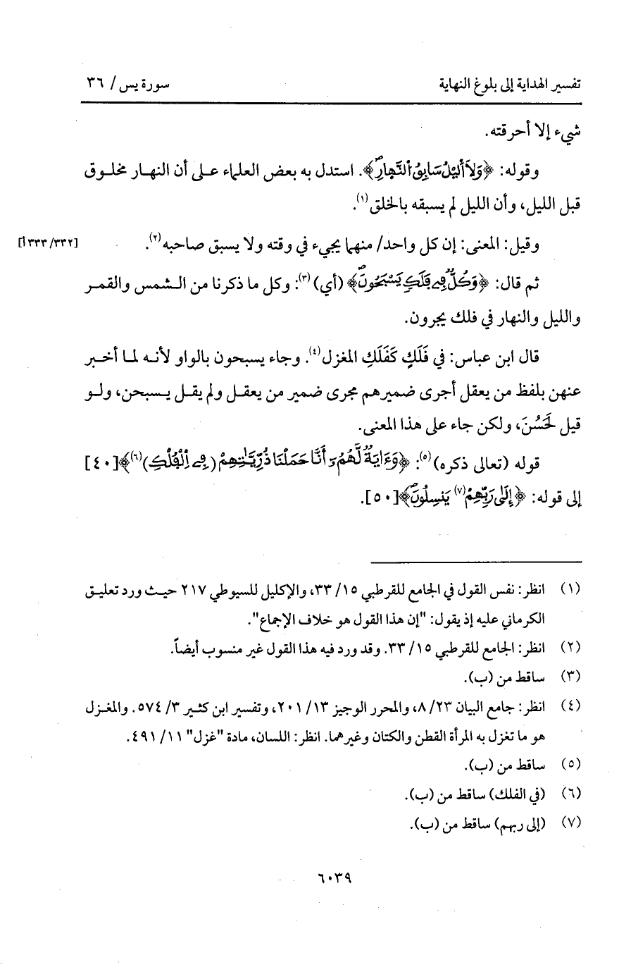 قال ابن عباس: في فَلَكٍ كَفَلَكِ المغزل. وجاء يسبحون بالواو لأنه لما أخبر عنهن بلفظ من يعقل أجرى ضميرهم مجرى ضمير من يعقل ولم يقل يسبحن، ولو قيل لَحَسُنَ، ولكن جاء على هذا المعنى.