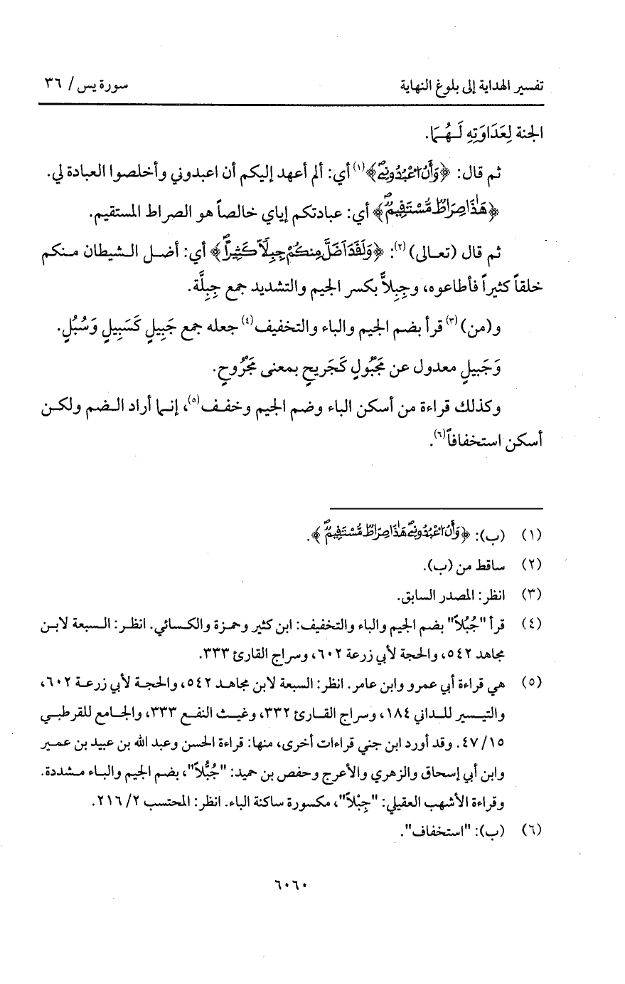 و (من) قرأ بضم الجيم والباء والتخفيف جعله جمع جَبِيلٍ كَسَبِيلٍ وَسُبُلٍ.