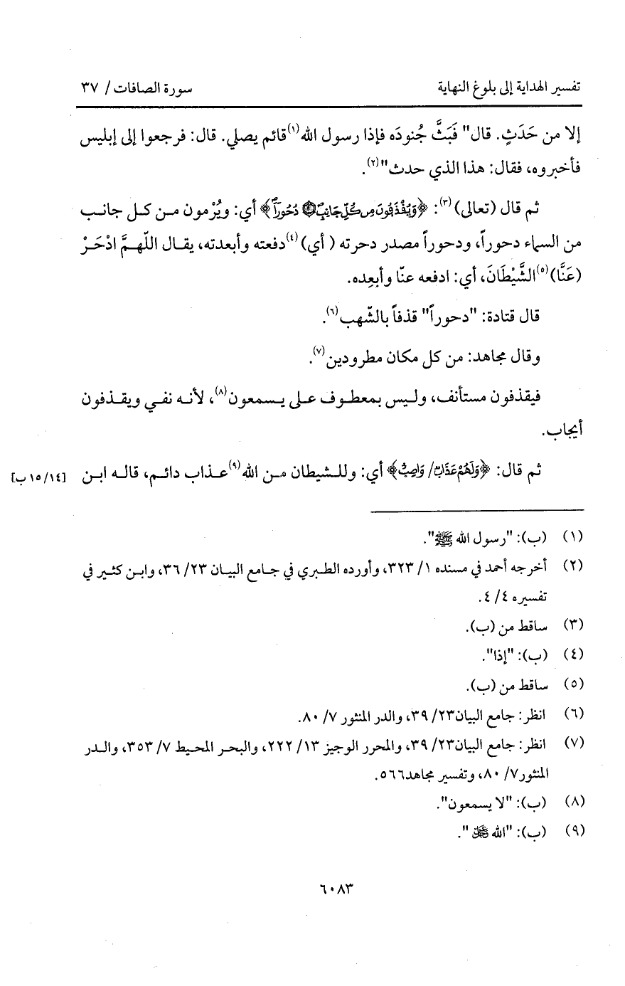 ثم قال (تعالى): {وَيُقْذَفُونَ مِن كُلِّ جَانِبٍ * دُحُوراً} أي: ويُرْمون من كل جانب من السماء دحوراً، ودحوراً مصدر دحرته (أي) دفعته وأبعدته، قال اللهمَّ ادْحَرْ (عَنَّا) الشَّيْطَانَ، أي: ادفعه عنّا وأبعِده.
