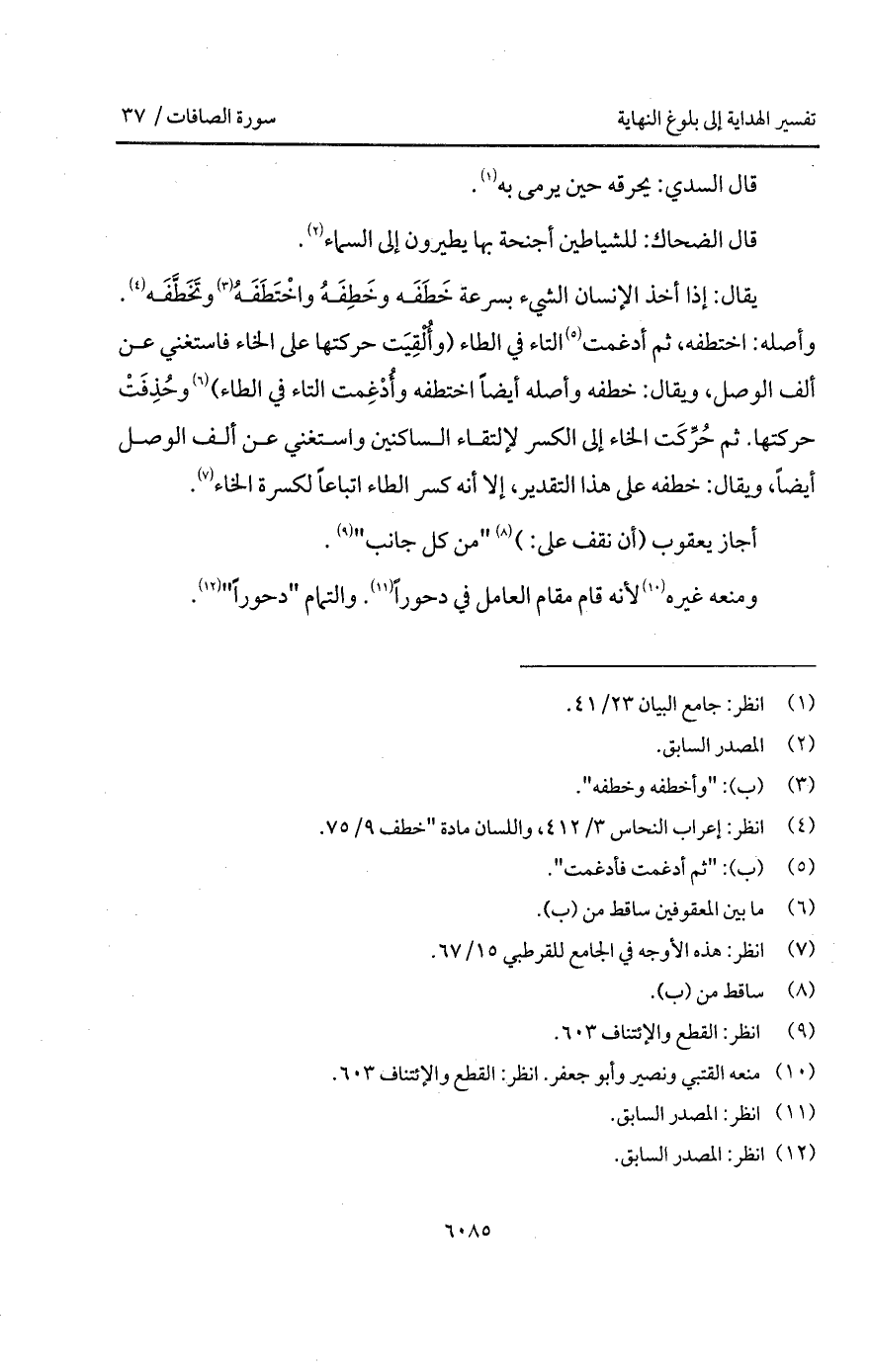 يقال: إذا أخذ الإنسان الشيء بسرعة خَطَفَه وخَطِفَهُ واخْتَطَفَهُ وتَخَطَفَه. وأصله: اختطفه، ثم أدغمت التاء في الطاء (وأُلْقِيَت حركتها على الخاء فاستغني عن ألف الوصل، ويقال: خطفه وأصله أيضاً اختطفه وأُدْغِمت التاء في الطاء) وحُذِفَتْ حركتها. ثم حُرِّكَت الخاء إلى الكسر لإلتقاء الساكنين واستغني عن ألف الوصل أيضاً، ويقال: خطفه على هذا التقدير، إلا أنه كسر الطاء اتباعاً لكسرة الخاء.