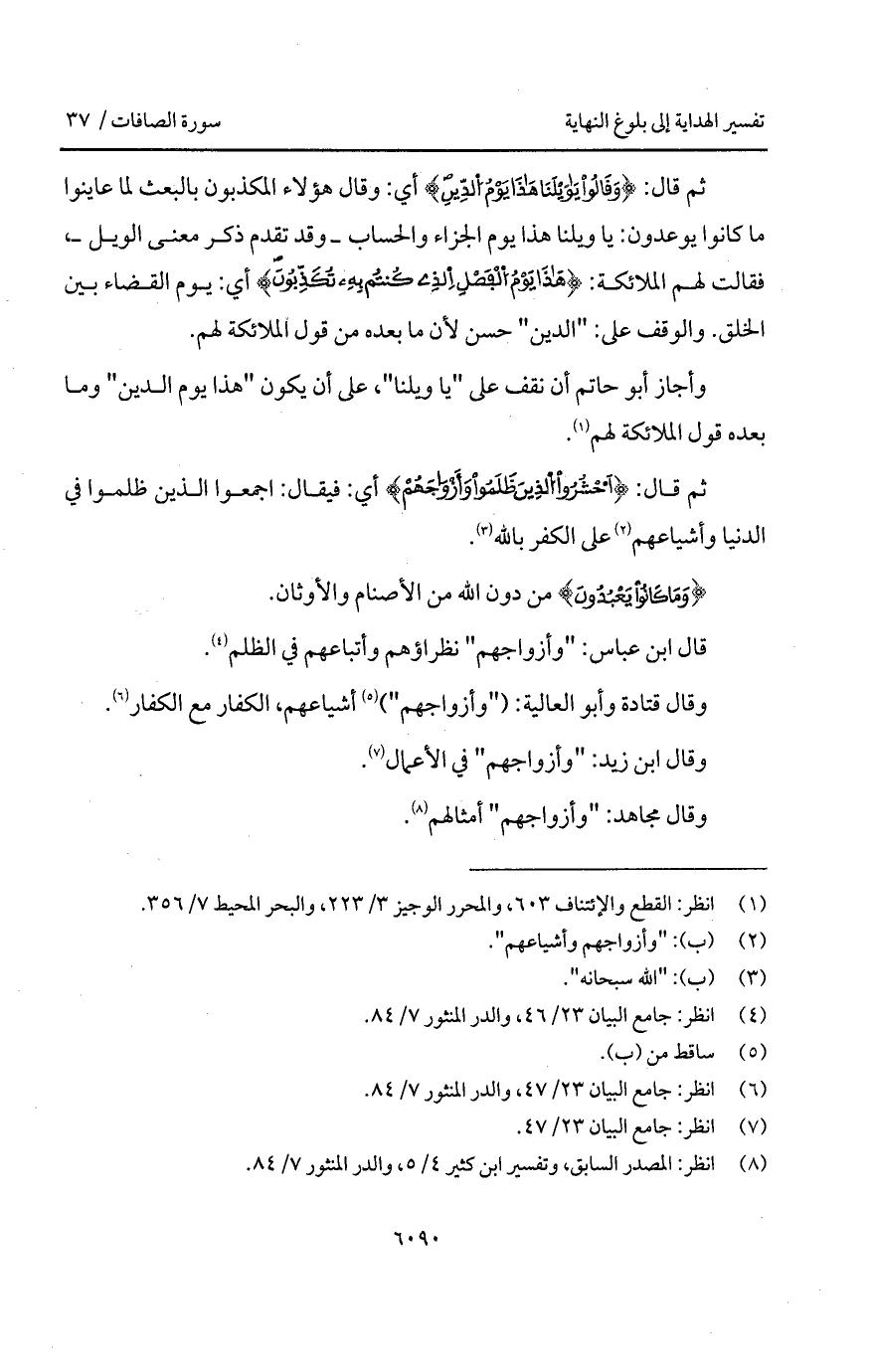وقال قتادة وأبو العالية: (" وأزواجهم ") أشياعهم، الكفار مع الكفار.