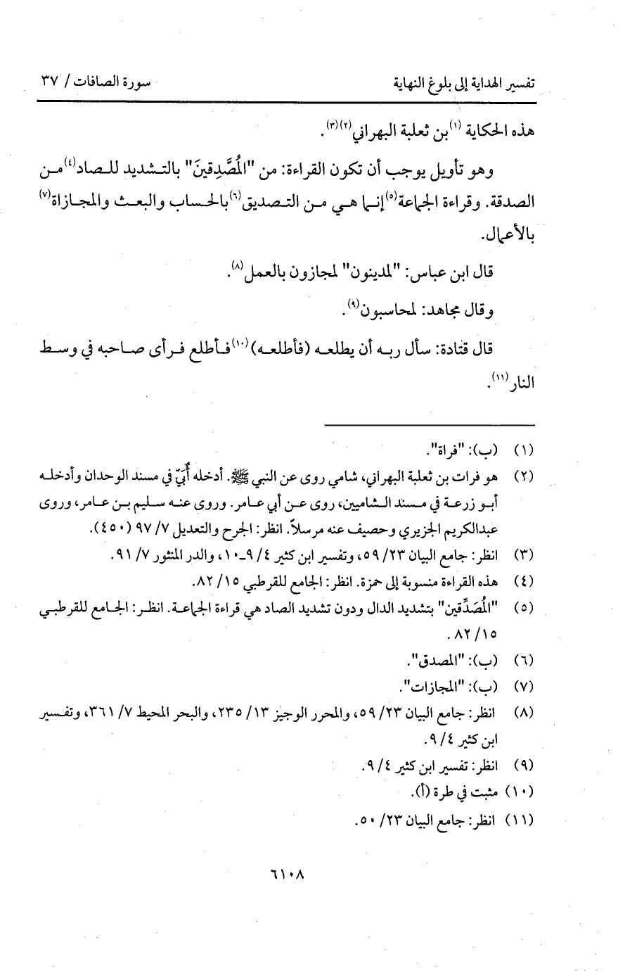 وهو تأويل يوجب أن تكون القراءة: من " المُصَّدِقينَ " بالتشديد للصاد من الصدقة. وقراءة الجماعة إنما هي من التصديق بالحساب والبعث والمجازاة بالأعمال.