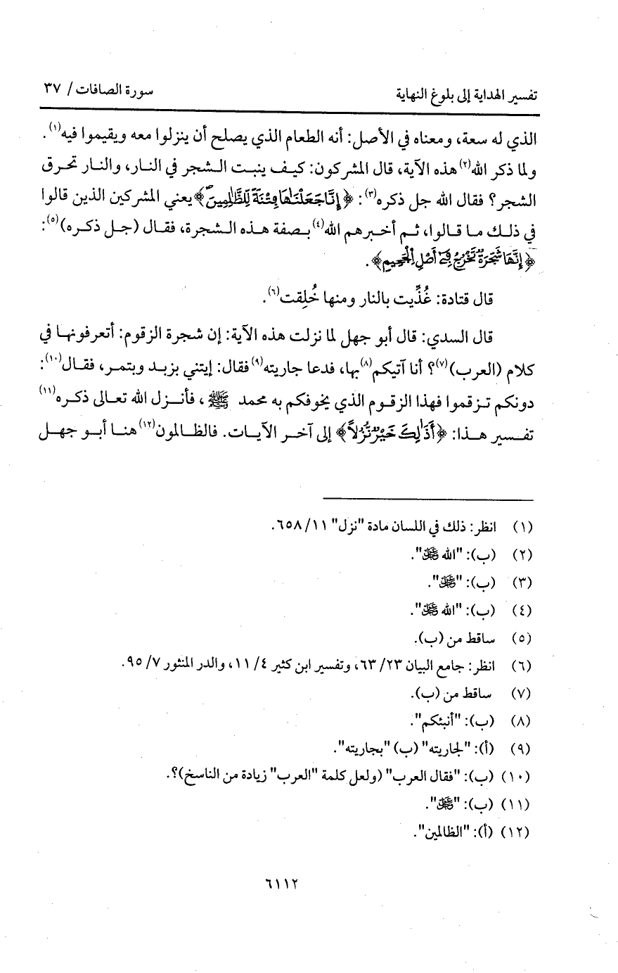 الذي له سعة، ومعناه في الأصل: أنه الطعام الذي يصلح أن ينزلوا معه ويقيموا فيه. ولما ذكر الله هذه الآية، قال المشركون: كيف ينبت الشجر في النار، والنار تحرق الشجر؟ فقال الله جل ذكره: {إِنَّا جَعَلْنَاهَا فِتْنَةً لِّلظَّالِمِينَ} يعني المشركين الذين قالوا في ذلك ما قالوا، ثم أخبرهم الله بصفة هذه الشجرة، فقال (جل ذكره): {إِنَّهَا شَجَرَةٌ تَخْرُجُ في أَصْلِ الجحيم}.