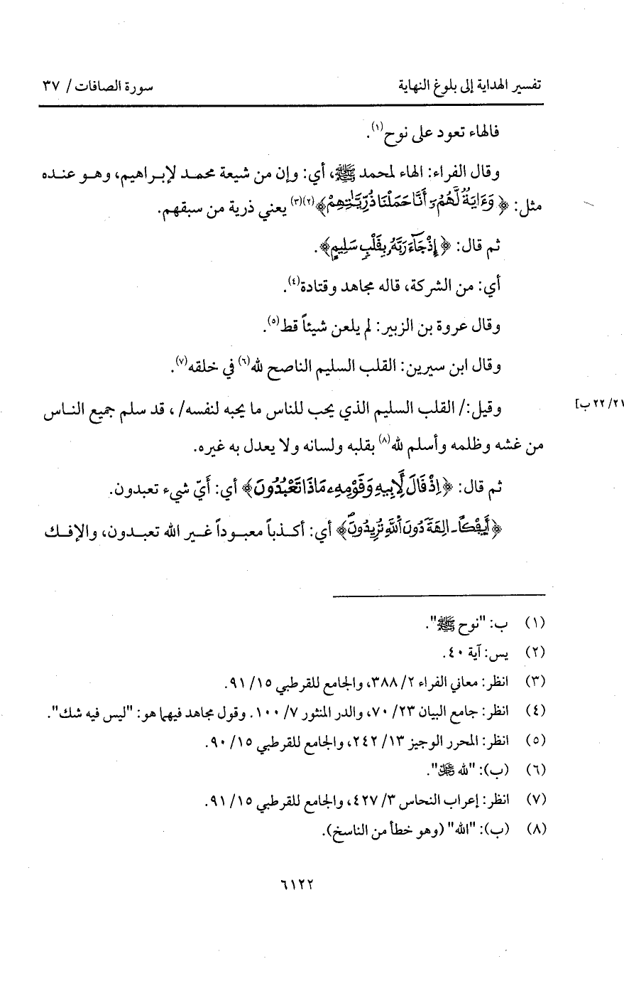 وقال الفراء: الهاء لمحمد A، أي: وإن من شعية محمد لإبراهيم، وهو عنده مثل: {وَآيَةٌ لَّهُمْ أَنَّا حَمَلْنَا ذُرِّيَّتَهُمْ} [يس: 41] يعني ذرية من سبقهم.