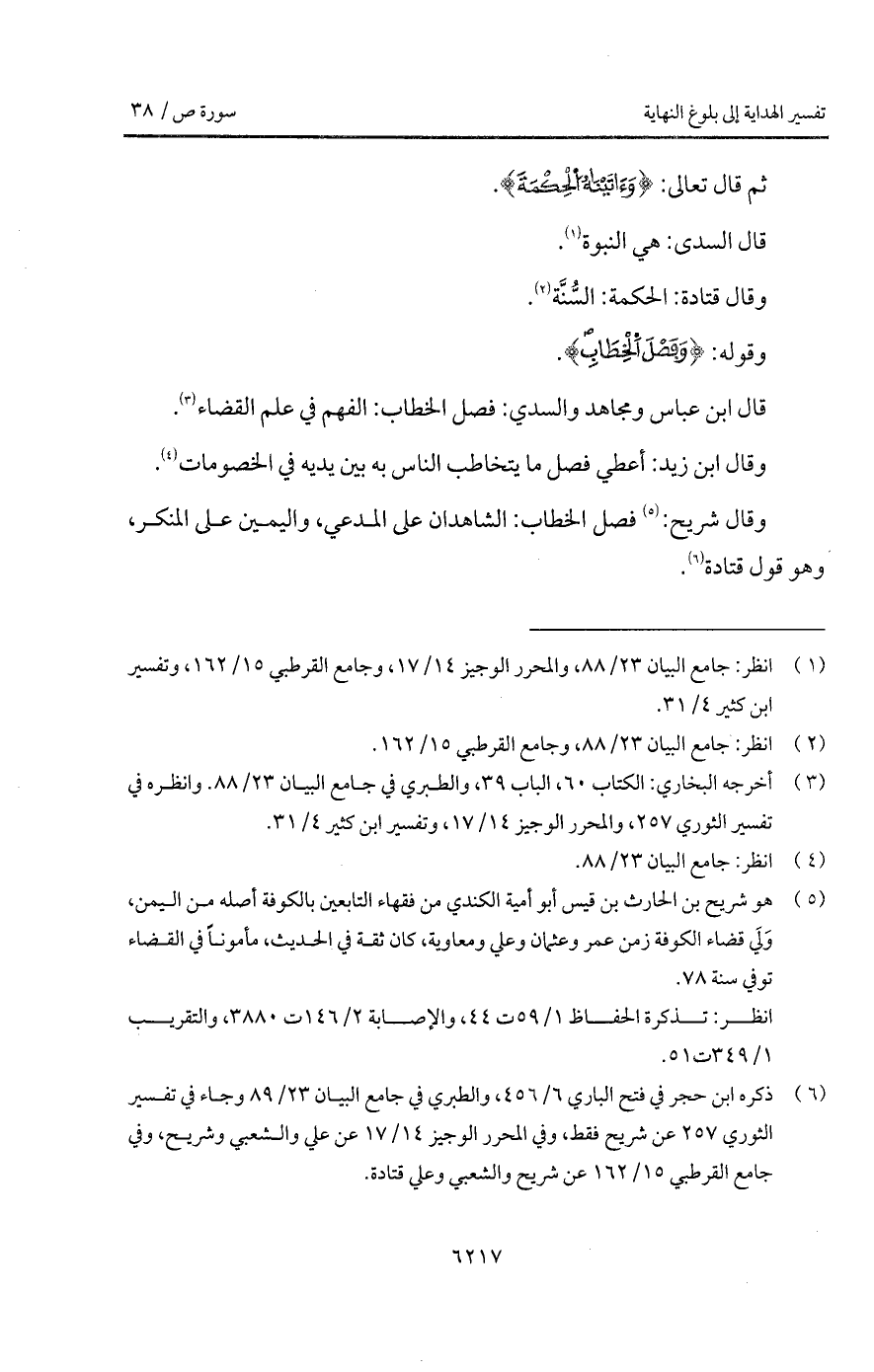قال ابن عباس ومجاهد والسدي: فصل الخطاب: الفهم في علم القضاء.