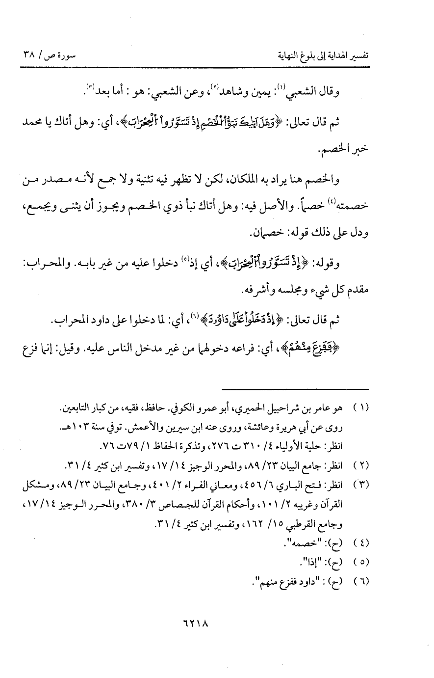 ثم قال تعالى: {وَهَلْ أَتَاكَ نَبَؤُاْ الخصم إِذْ تَسَوَّرُواْ المحراب}، أي: وهل أتاك يا محمد خبر الخصم.