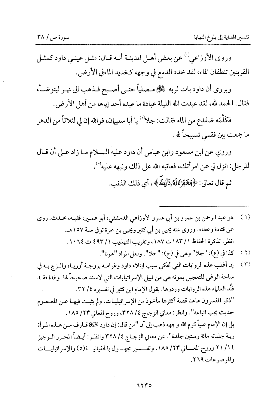 وروي عن ابن مسعود وابن عباس أن داود عليه السلام ما زاد على أن قال للرجل: انزل لي عن امرأتك، فعاتبه الله على ذلك ونبهه عليه.