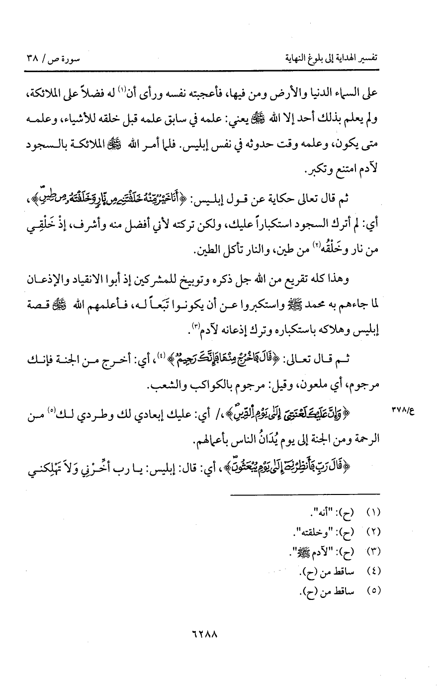 وهذا كله تقريع من الله جل ذكره وتوبيخ للمشركين إذ أبوا الانقياد والإذعان لما جاءهم به محمد A واستكبروا عن أن يكونوا تَبَعاً له، فأعلمهم الله D قصة إبليس وهلاكه باستكباره وترك إذعانه لآدم.