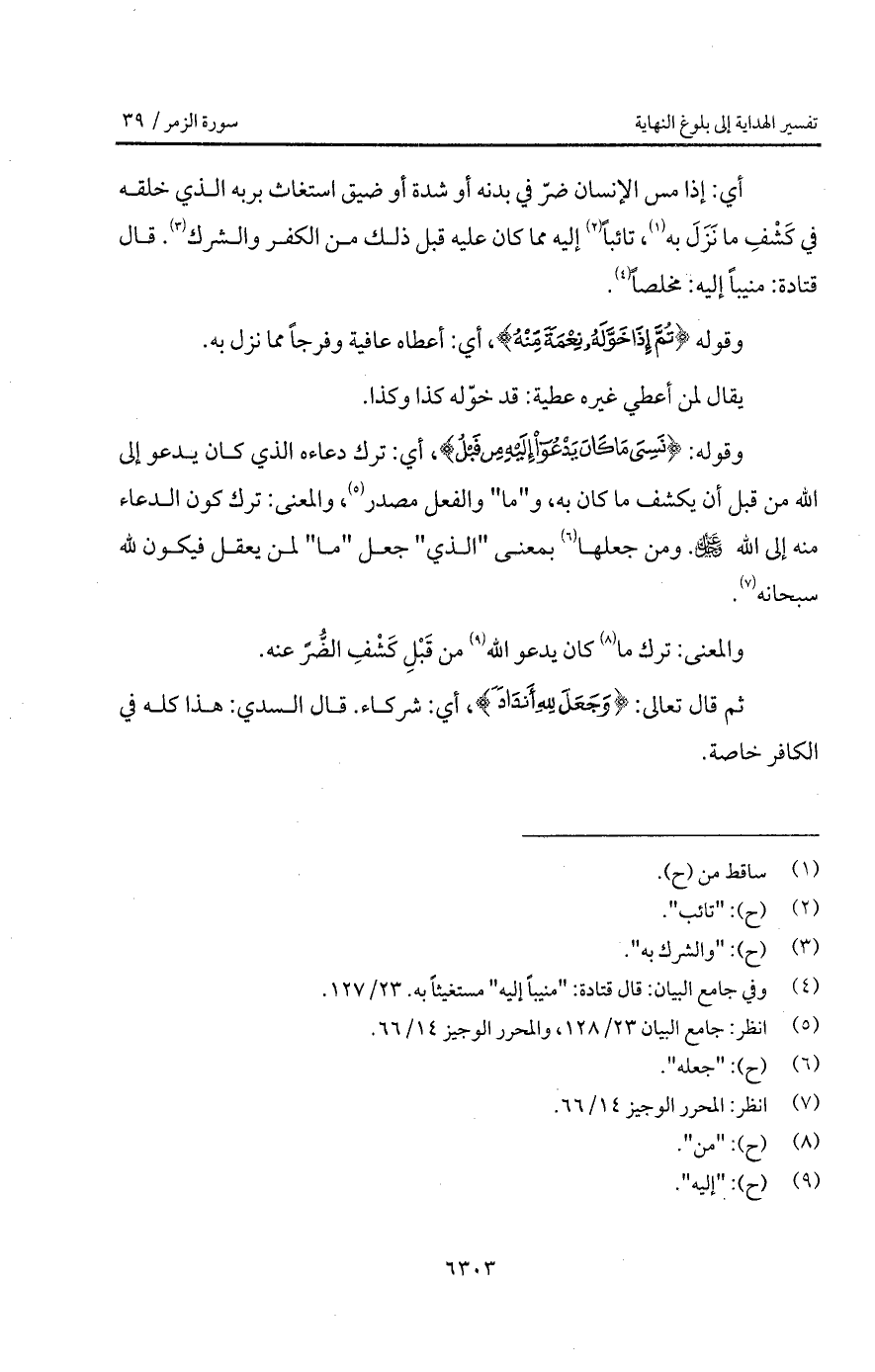 وقوله: {نَسِيَ مَا كَانَ يدعوا إِلَيْهِ مِن قَبْلُ}، أي: ترك دعاءه الذي كان يدعو إلى الله من قبل أن يكشف ما كان به، و " ما " والفعل مصدر، والمعنى: ترك كون الدعاء منه إلى الله D. ومن جعلها بمعنى " الذي " جعل " ما " لمن يعقل فيكون لله سبحانه.