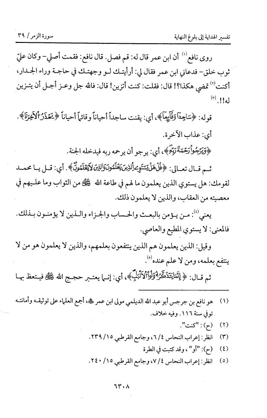 قوله: {سَاجِداً وَقَآئِماً}، أي: يقنت ساجداً أحياناً وقائماً أحياناً {يَحْذَرُ الآخرة}.