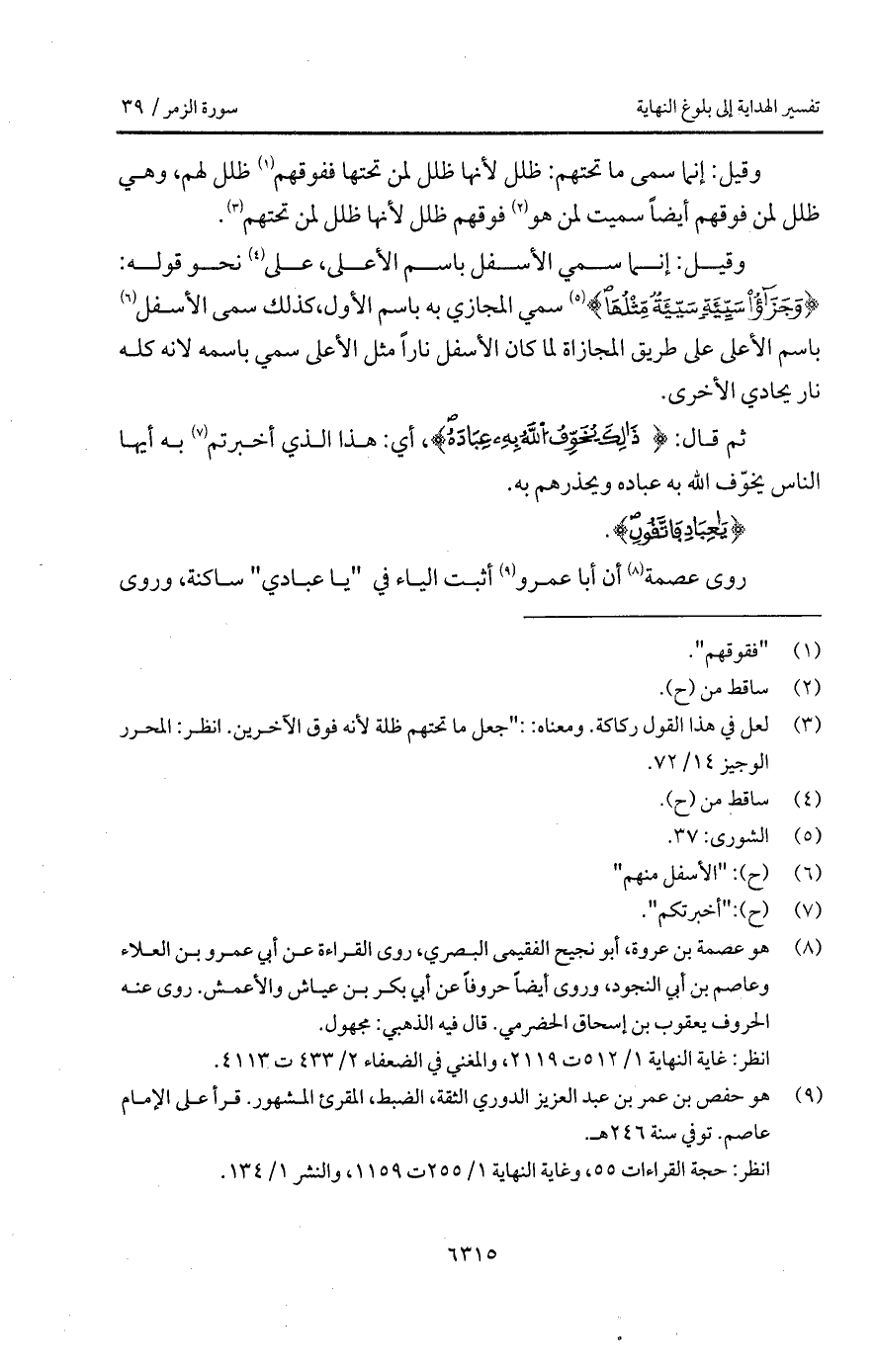روى عصمة أن أبا عمرو أثبت الياء في " يا عبادي " ساكنة، وروى