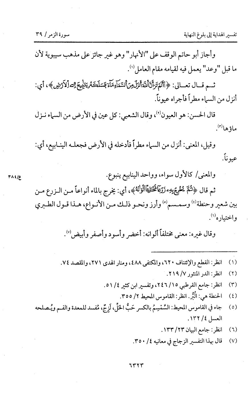 ثم قال تعالى: {أَلَمْ تَرَ أَنَّ الله أَنزَلَ مِنَ السمآء مَآءً فَسَلَكَهُ يَنَابِيعَ فِي الأرض}، أي: أنزل من السماء مطراً فأجراه عيوناً.