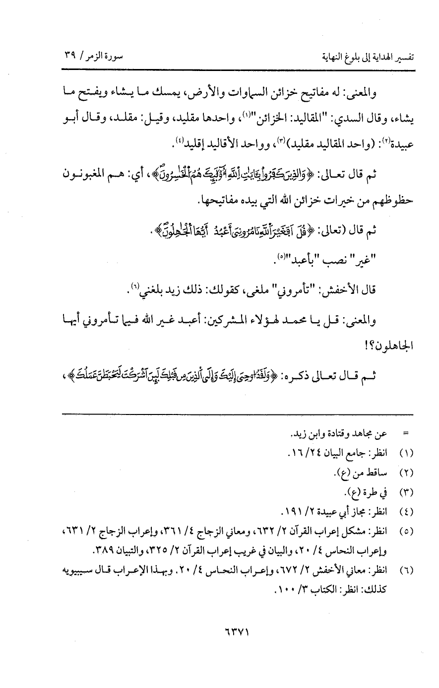 والمعنى: له مفاتيح خزائن السماوات والأرض، يمسك ما يشاء ويفتح ما يشاء، وقال السدي: " المقاليد: الخزائن "، واحدها مقليد، وقيل: مقلد، وقال أبو عبيدة: (واحد المقاليد مقليد)، وواحد الأقاليد إقليد.