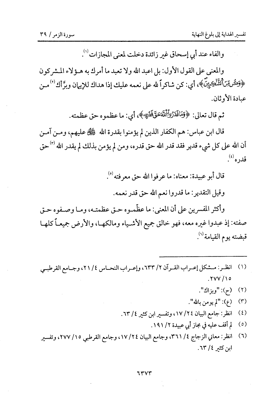 وأكثر المفسرين على أن المعنى: ما عظّموه حق عظمته، وما وصفوه حق صفته: إذ عبدوا غيره معه، فهو خالق جميع الأشياء ومالكها، والأرض جميعاً كلها قبضته يوم القيامة.