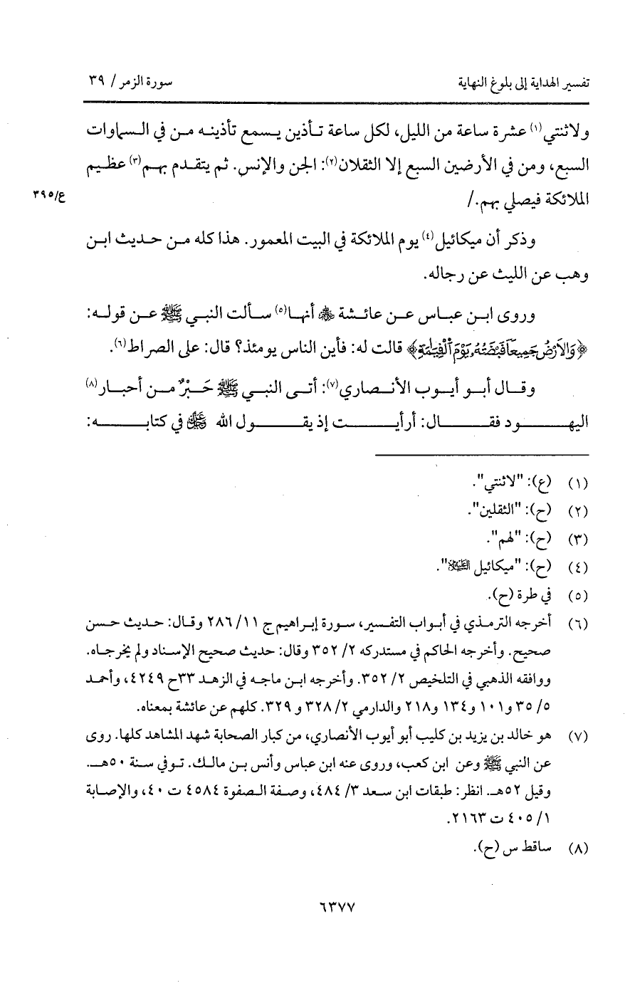 وقال أبو أيوب الأنصاري: " أتى النبي A حَبْرٌ من أحبار اليهود فقال: أرأيت إذ يقول الله D في كتابه: