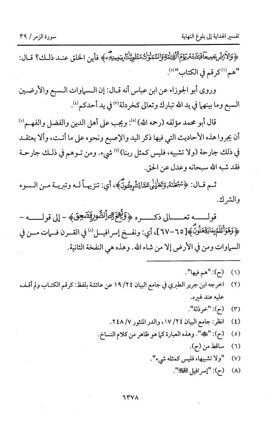 وروى ابن الجوزاء عن ابن عباس أنه قال: إن السماوات السبع والأرضين السبع وما بينهما في يد الله تبارك وتعالى كخردلة في يد أحدكم.