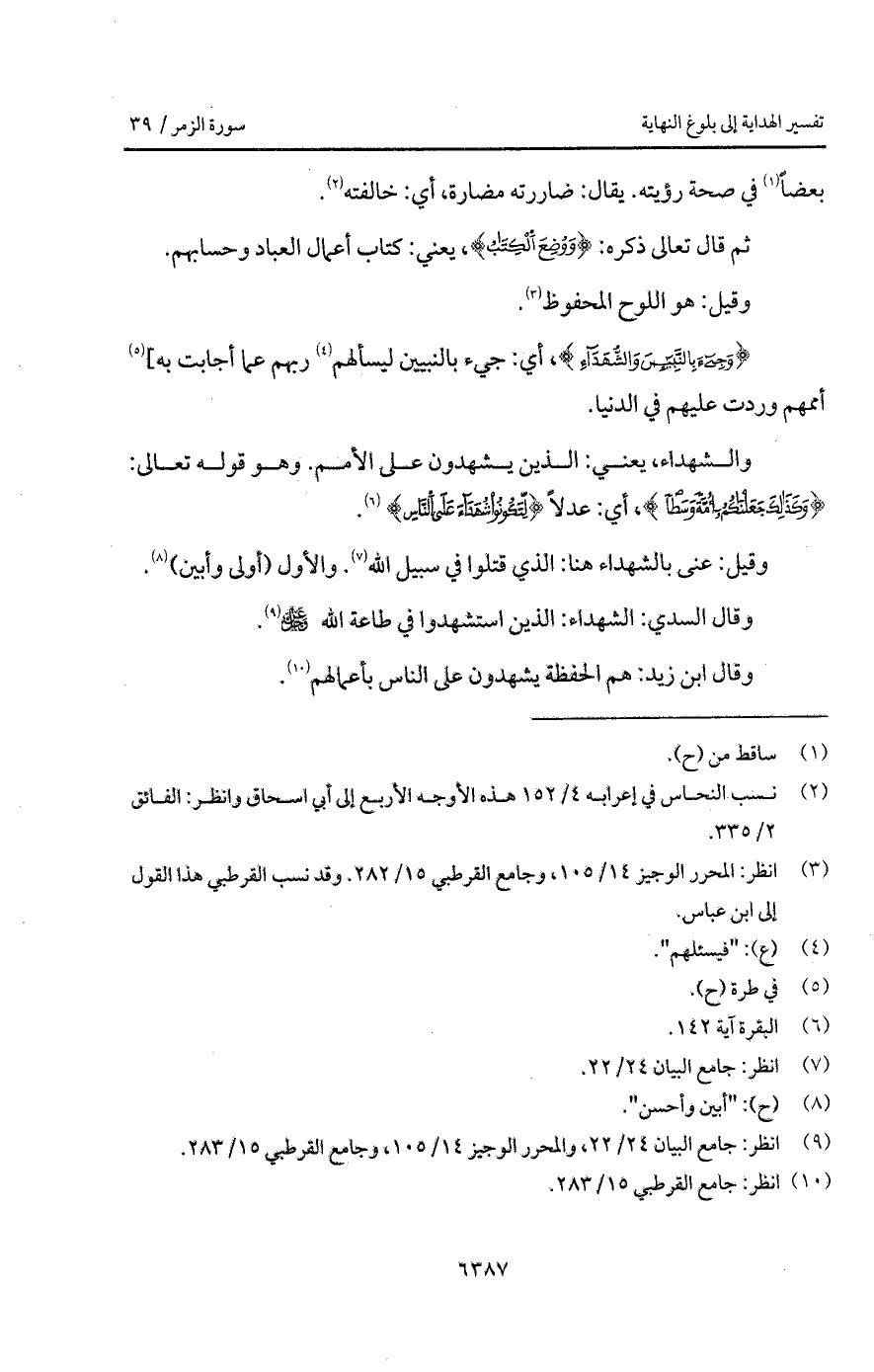 والشهداء، يعني: الذين يشهدون على الأمم. وهو قوله تعالى: {وَكَذَلِكَ جَعَلْنَاكُمْ أُمَّةً وَسَطاً} [البقرة: 143]، أي: عدلاً {لِّتَكُونُواْ شُهَدَآءَ عَلَى الناس} [البقرة: 143].