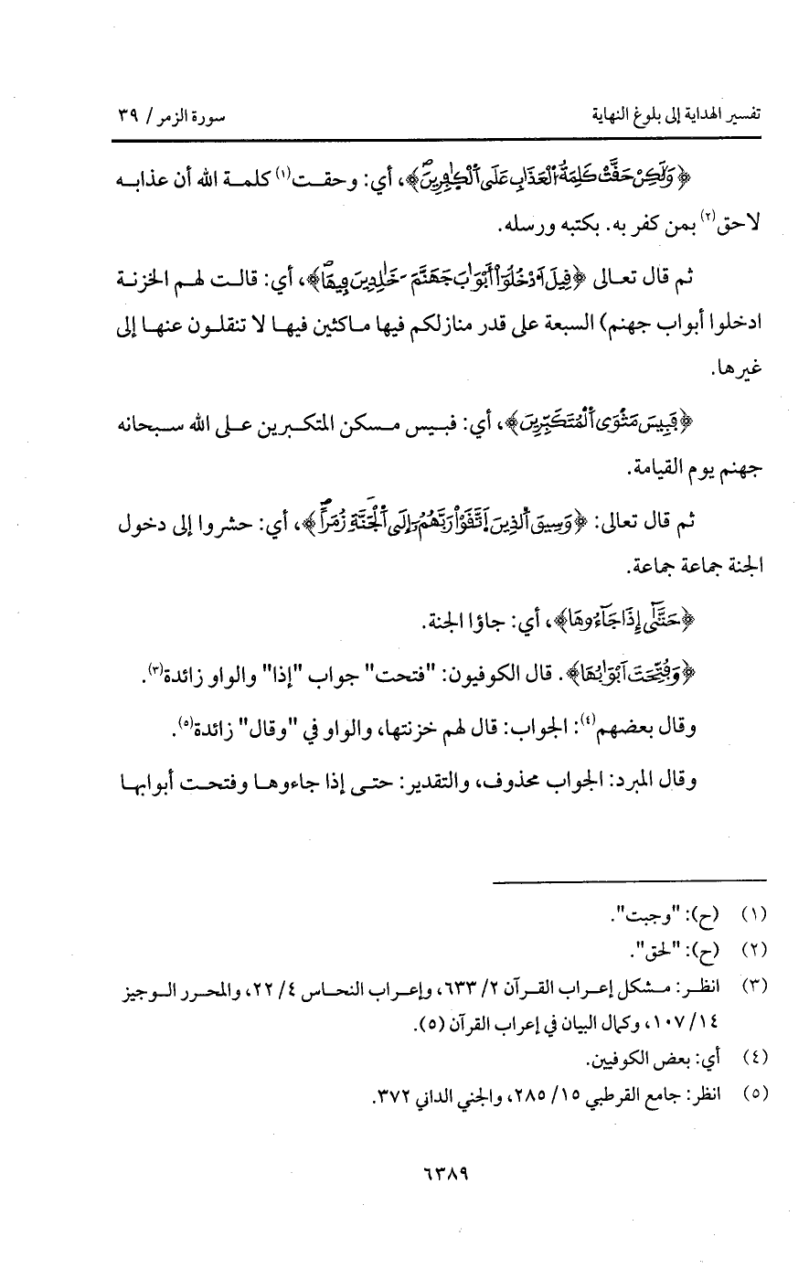 وقال المبرد: الجواب محذوف، والتقدير: حتى إذا جاءوها وفتحت أبوابها