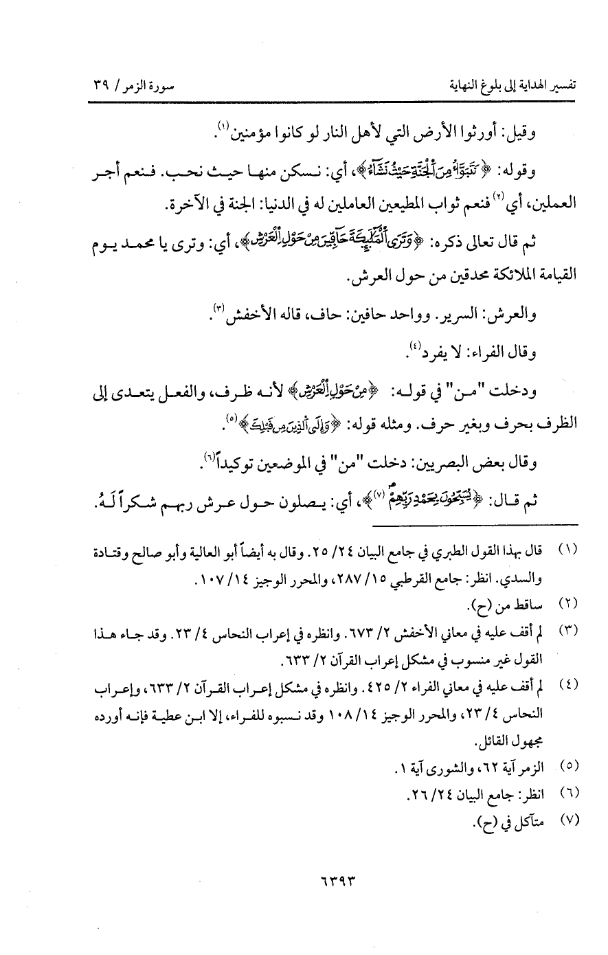 ودخلت " من " في قوله: {مِنْ حَوْلِ العرش} لأنه ظرف، والفعل يتعدى إلى الظرف بحرف وبغير حرف. ومثله قوله: {وَإِلَى الذين مِن قَبْلِكَ} [الزمر: 65، والشورى: 3].
