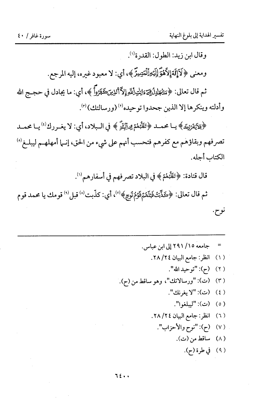 {فَلاَ يَغْرُرْكَ} يا محمد {تَقَلُّبُهُمْ فِي البلاد} في البلاد، أي: لا يغررك يا محمد تصرفهم وبقاؤهم مع كفرهم فتحسب أنهم على شيء من الحق، إنما أمهلهم ليبلغ الكتاب أجله.