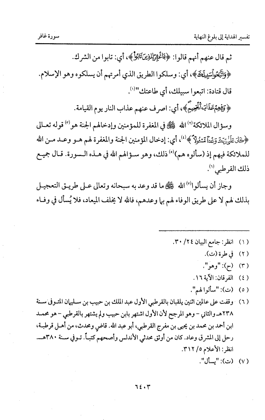 {كَانَ على رَبِّكَ وَعْداً مَّسْئُولاً} [الفرقان: 16]، أي: إدخال المؤمنين الجنة والمغفرة لهم هو وعد من الله للملائكة فيهم إذ (سألوه) ذلك، وهو سؤالهم الله في هذه السورة. قال جميع ذلك القرطبي.