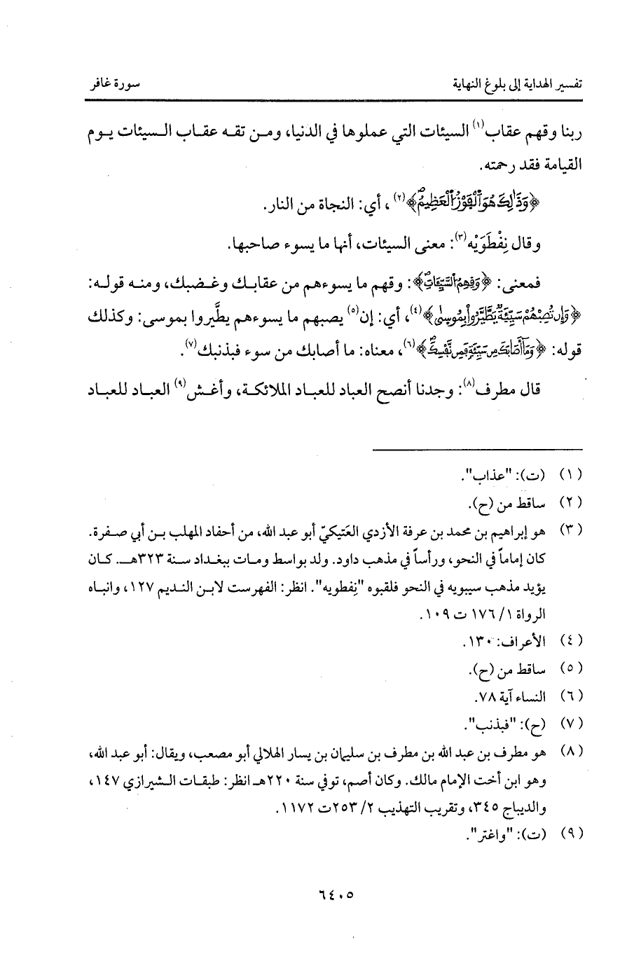 وقال نِفْطَوَيْه: معنى السيئات، أنها ما يسوء صاحبها.