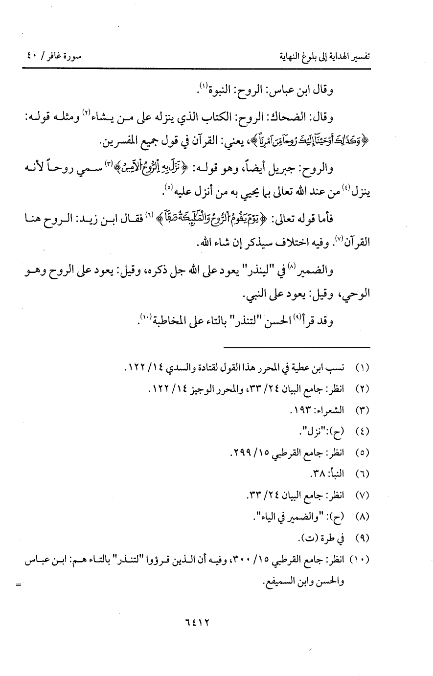 وقال: الضحاك: الكتاب الذي ينزله على من يشاء ومثله قوله: {وَكَذَلِكَ أَوْحَيْنَآ إِلَيْكَ رُوحاً مِّنْ أَمْرِنَا} [الشورى: 52]، يعني: القرآن في قول جميع المفسرين.