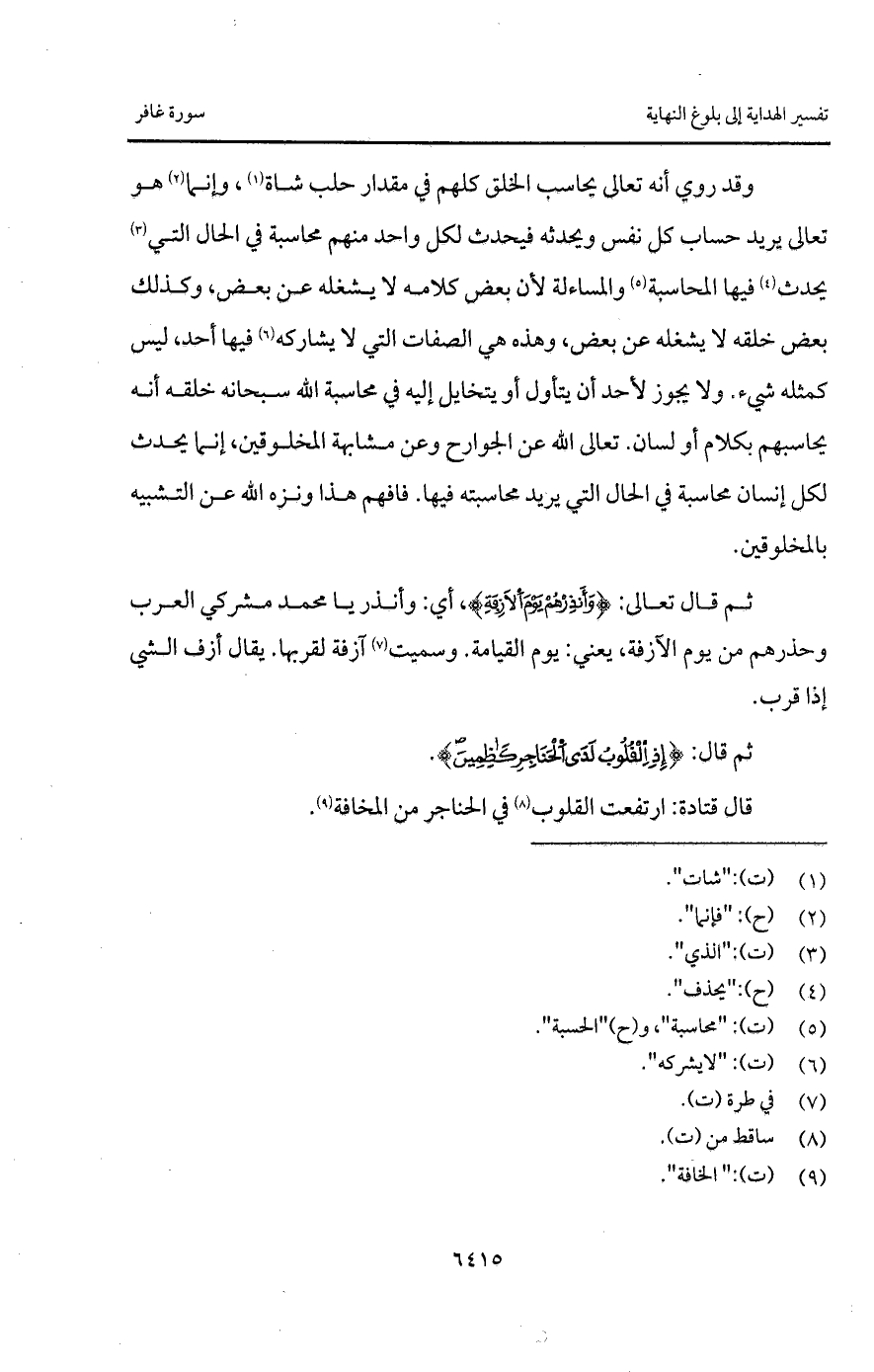 وقد روي أنه تعالى يحاسب الخلق كلهم في مقدار حلب شاة، وإنما هو تعالى يريد حساب كل نفس ويحدثه فيحدث لكل واحد منهم محاسبة في الحال التي يحدث فيها المحاسبة والمساءلة لأن بعض كلامه لا يشغله عن بعض، وكذلك بعض خلقه لا يشغله عن بعض، وهذه هي الصفات التي لا يشاركه فيها أحد، ليس كمثله شيء. ولا يجوز لأحد أن يتأول أو يتخايل إليه في محاسبة الله سبحانه خلقه أنه يحاسبهم بكلام أو لسان. تعالى الله عن الجوارح وعن مشابهة المخلوقين، إنما يحدث لكل إنسان محاسبة في الحال التي يريد محاسبته فيها. فافهم هذا ونزه الله عن التشبيه بالمخلوقين.