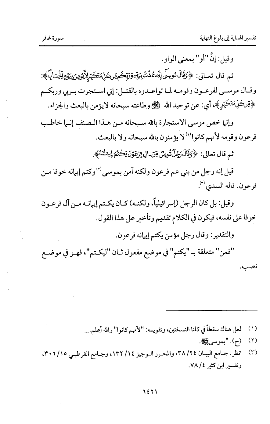 ثم قال تعالى: {وَقَالَ رَجُلٌ مُّؤْمِنٌ مِّنْ آلِ فِرْعَوْنَ يَكْتُمُ إِيمَانَهُ}.