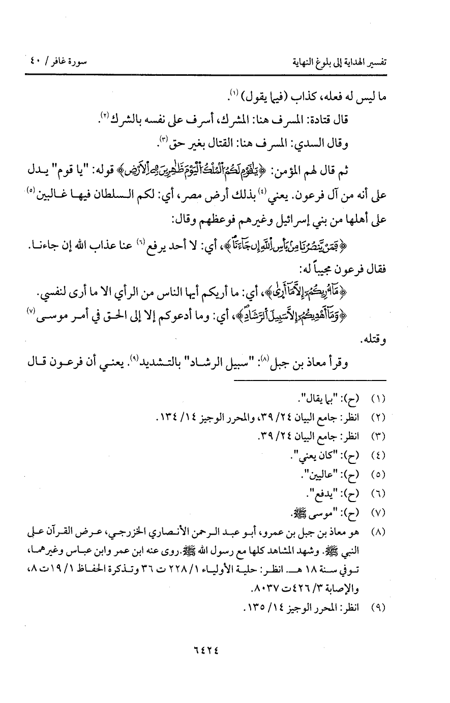 وقرأ معاذ بن جبل: " سبيل الرشاد " بالتشديد. يعني أن فرعون قال